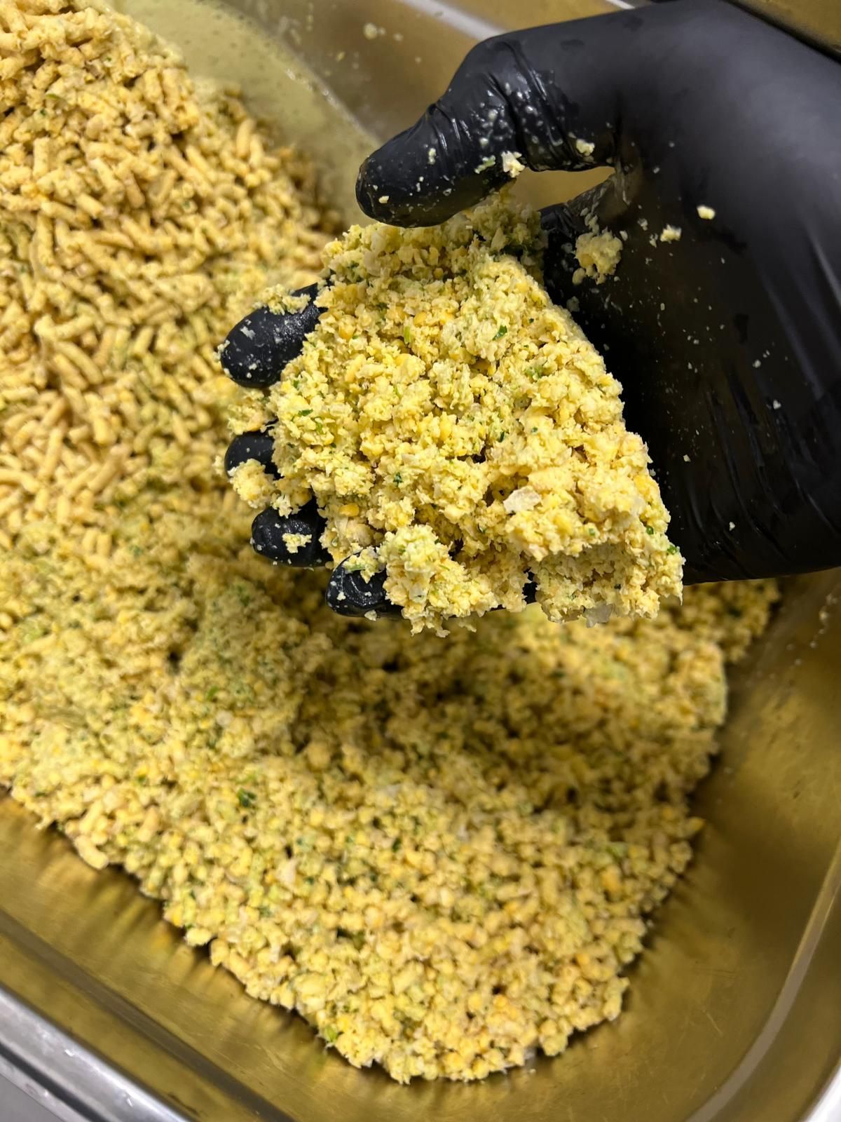 Unsere charakteristischen Falafel haben eine knusprige Außenhülle, die für ein angenehmes Knirschen sorgt, und eine lohnende weiche Füllung mit der ganzen Wärme nahöstlicher Gewürze, die mit unserer eigenen geheimen Mischung hergestellt wurden.